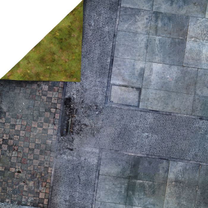 Explore the ruins of a war-torn city with the "Aftermatch Plaza" battle mat (48”x48” / 122x122 cm), perfect for games like Infinity and Adeptus Titanicus. Featuring cracked sidewalks, rubble, and explosion marks, it creates an immersive urban battlefield. Available in four materials – rubber, latex, and antislip – it offers great grip and durability. The high-quality print and laser-cut edges ensure longevity. More than just a mat, it's a gateway to epic battles and rich storytelling. Let’s play together!