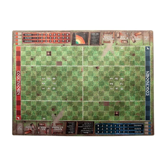 Grassy Checkerboard is a mat that perfectly captures the atmosphere of a playing field that has already survived many clashes in battle games and RPGs. The 35.5" x 27.5" / 90cm x 70cm rubber mat is perfect for Blood Bowl and Blood Bowl 7s games. Zones are marked on the mat according to the rules of these games. The mat can be rolled up or easily folded, the anti-slip bottom ensures that the mat will not move on the table.