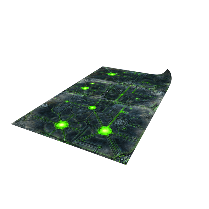The "DeathWorld Tomb" battle mat is a perfect choice for fans of futuristic skirmishes, especially in games like Warhammer 40,000 and Horus Heresy. Its size, 44”x30”, makes it ideal for dynamic gameplay. With a highly detailed design featuring illuminated energy grids and remnants of a technologically advanced civilization, it transports you directly to a world of cutting-edge technology and intrigue.