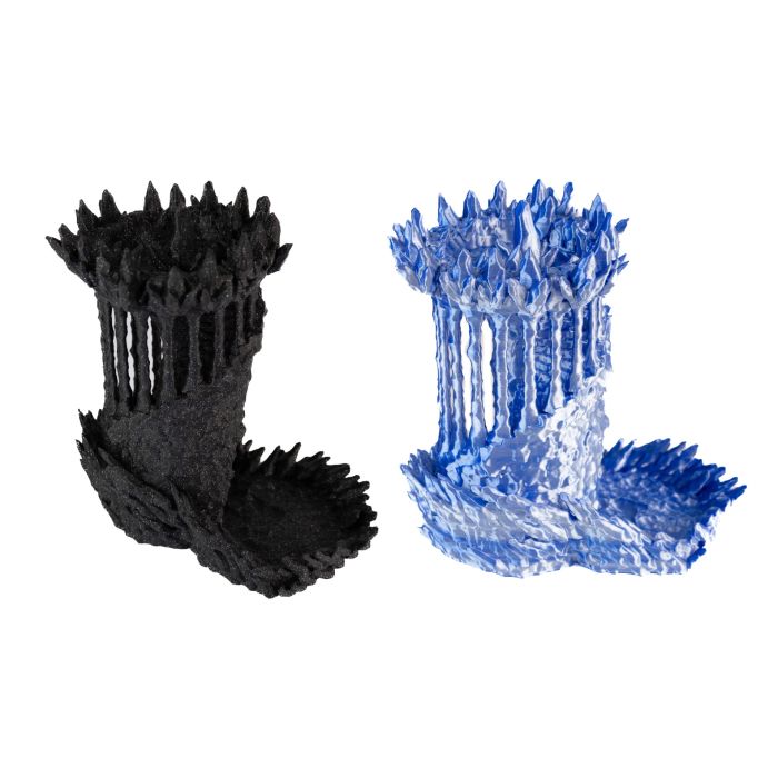 The tower's extraordinary design cannot be overlooked. Its unique look is inspired by crystals, which in fantasy culture often symbolize wisdom, power, and the secrets of ancient civilizations. These crystals not only give the tower a mystical character but also make it a true work of art on your gaming table. The tower is available in two color variants: black, reminiscent of dark crystals, and blue, evoking icy artifacts or water magic. This allows you to match the tower to the theme of your game as well as to your individual aesthetic preferences.