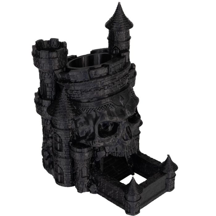 Crafted using advanced 3D printing technology, this tower boasts incredible precision in detailing every feature. From the deeply sculpted skull on the front to the intricately designed turrets, every aspect of the Skull Fortress has been meticulously crafted to convey the full extent of its dark, ominous nature. Standing 20 cm (7.9") tall with a base measuring 13.5 x 10 cm (5.3" x 3.9"), this tower serves not only as a functional tool for rolling dice but also as a striking centerpiece on any gaming table.