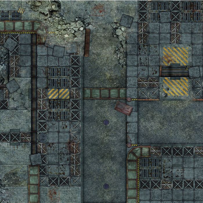 The "Fallen City" battle mat (36”x36” / 91.5x91.5 cm) takes you into the heart of a ruined metropolis, perfect for games like Adeptus Titanicus, Gaslands, Marvel Crisis Protocol, and Fallout Wasteland Warfare. With detailed depictions of industrial ruins, cracked sidewalks, and hazard markings, it sets the perfect atmosphere for intense battles. Choose from four material options to match your gaming style. Your battles, your city – immerse yourself in the post-apocalyptic world!