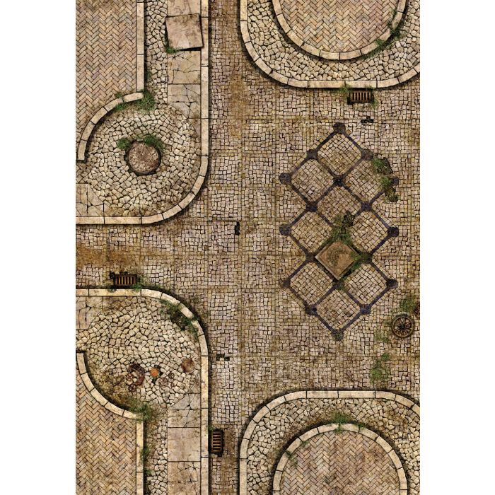 Mat in size 44 "x30" / 112x76 cm for battle and RPG with a pattern of the cobblestone covered area. This material mat is the best choice if you want to fight a climate battle, for example in RPG and others in the Warmachine & Hordes climate. From below, the mat is non-slip and adheres well to the table.