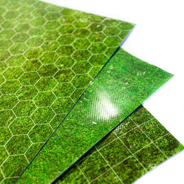 Enhance your RPG sessions with the "Grass" dry-erase mat, measuring 80 cm x 80 cm (31.5" x 31.5"). Featuring a hexagonal grid, this mat is perfect for games like Dungeons & Dragons, Pathfinder, and Warhammer Fantasy Roleplay. Made from durable 0.7 mm thick PVC, the mat is reusable and easy to clean, allowing you to create and modify maps during gameplay.