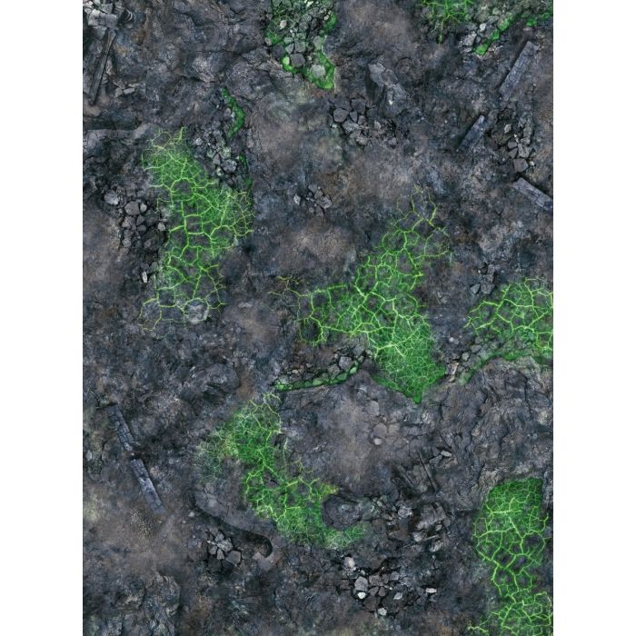 Before you stretches a cracked landscape, glowing with eerie green light. The "Green Blight Battlefield" (30”x22” / 76x56 cm) sets the perfect stage for Warhammer: Age of Sigmar Spearhead skirmishes, where corruption and magic intertwine in a deadly struggle.