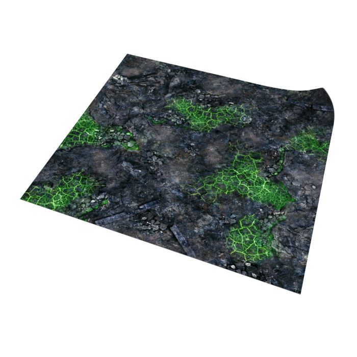 Featuring intricate cracks, scattered debris, and glowing green fissures, this mat adds depth and drama to every battle. Whether your miniatures represent factions fighting over the power source beneath, or adventurers searching for lost relics, the high-quality print provides a rich environment that enhances immersion.