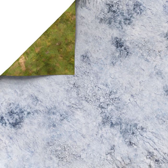 The "Ice" Battle Mat (48"x48") is the ultimate gaming surface for tabletop wargames like A Song of Ice and Fire, Conquest, Saga, and Warmachine & Hordes. With its realistic frozen terrain design, it enhances gameplay immersion. Choose from single-sided or double-sided options in rubber, antislip fabric, or latex for durability and versatility.