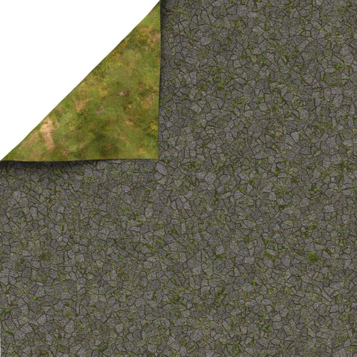 The Double-sided castle pavement is a mat that perfectly reflects the atmosphere of the historic castle square in battle games and RPG. Waterproof latex mat of 36'x36 ' / 91.5x91.5 cm is great for games in Godslayer. On the other side of the mat, a grassy plain pattern is fitting to a variety of skirmishes.