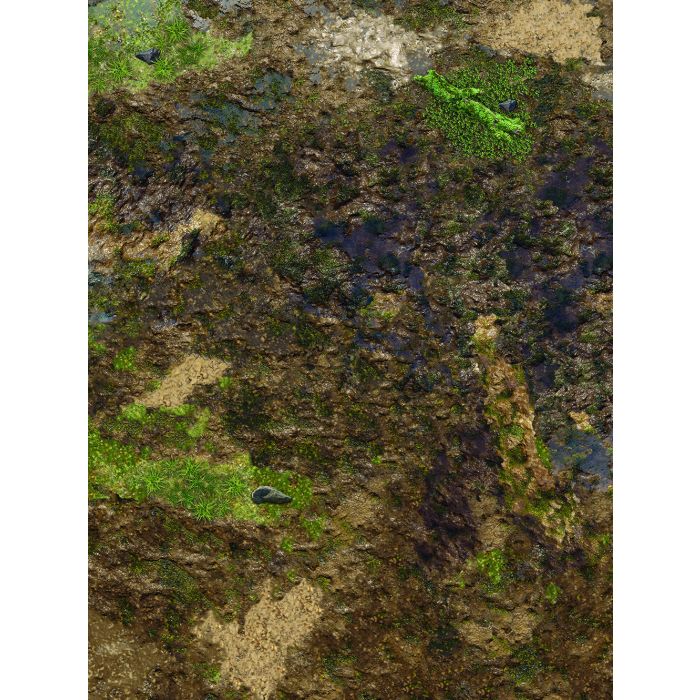 The "Muddy Terrain" battle mat (30”x22” / 76x56 cm) is a compact battlefield setting, perfect for Warhammer: Age of Sigmar Spearhead and Warhammer 40K Kill Team. Puddles, moss, and uneven ground add tactical depth and immersion to your skirmishes. Choose from four material options to match your playstyle. High-resolution printing and durability ensure that your battles feel more realistic than ever. Craft your own story on the muddy battlefield!