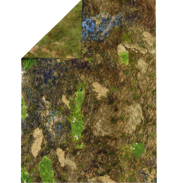 The "Muddy Terrain" battle mat (44”x60” / 112x152 cm) is the perfect setting for Warhammer: Age of Sigmar, Warhammer 40K, and Horus Heresy. Featuring a vast muddy landscape with puddles and mossy patches, this mat adds realism and tactical depth to every battle. Choose from four material options to match your gaming style. High-resolution printing and durable materials ensure an immersive gameplay experience. Tactics, rough terrain, and epic battles – who will emerge victorious?