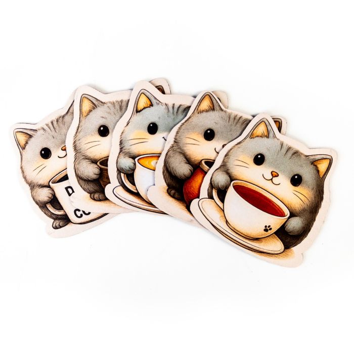 Description / Mug Coaster set - Cats with Mugs (Catsters) - 5 Pcs