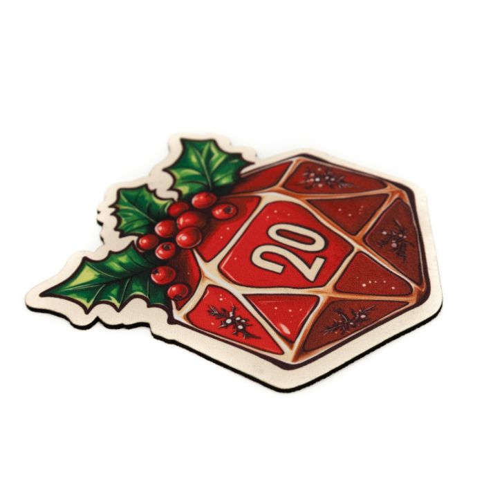 The "Christmas D20" Coaster Set is a perfect blend of functionality and festive charm, designed to delight RPG and board game fans. This set includes 4 unique coasters, each showcasing a 20-sided die (D20) adorned with Christmas decorations such as holly leaves and bright red berries. These delightful details bring the magic of the holidays to your tabletop.