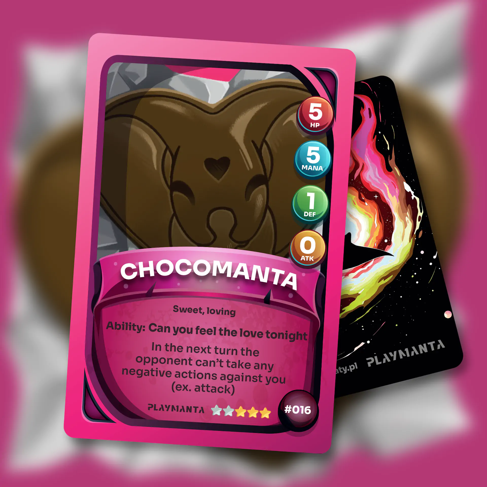 Playmanta is a collectible, rubber coaster in the shape of a manta ray and its trading card. Each copy refers to themes from games, movies or pop culture.