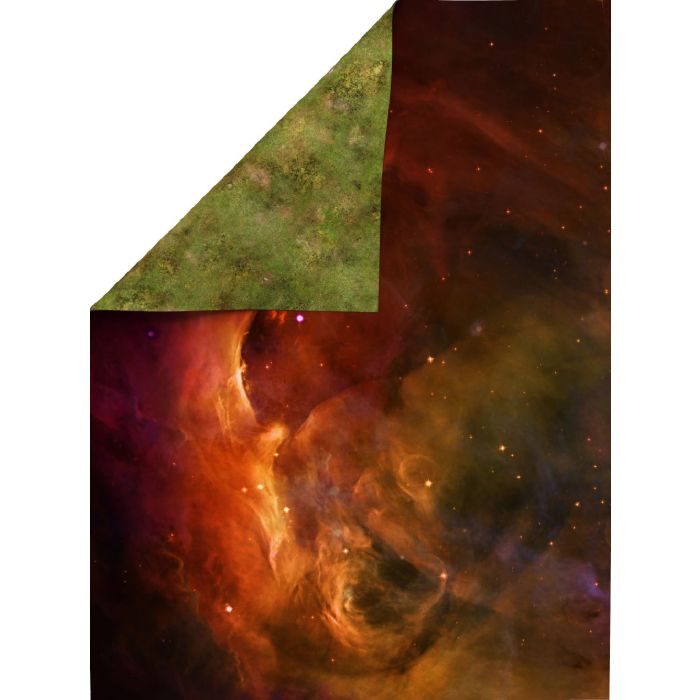 Perfect for RPG and battle games, a Double-sided rubber mat with a red nebula pattern. A 48 "X36" / 122x91.5 cm rubber mat is the perfect choice as a game base such as RPG and others in a space climate. On the other side of the mat there is a design of a grassy plain, allowing you to introduce even more differentness to the games.