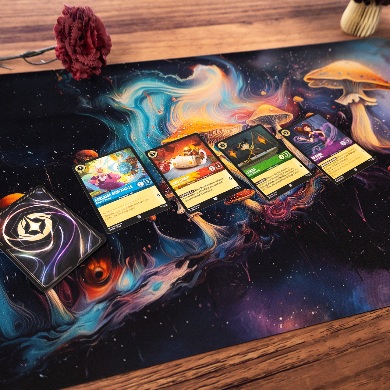 The dreamlike mushroom motif in space is extremely plastic and fits perfectly into the vibe of many popular card and board titles. It will be an ideal choice for: