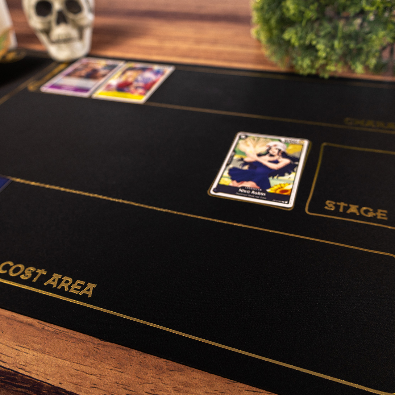 Bet on royal elegance and absolute readability. The Black & Gold mat features a minimalist, deep black background broken by luxurious gold zone lines. Fully compatible with the One Piece card game, it has designated spots for Life, Don!!, and Leader cards. It's the perfect choice for tournament players who want their rare cards to shine brightest. Stable rubber and precise hot-stamping. Let’s play together!
