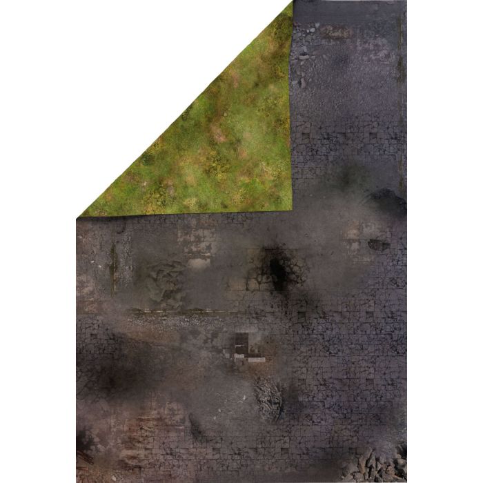 The "Ruined City" battle mat, sized 44”x30” (112x76 cm), is the perfect backdrop for games like Warhammer 40K and Horus Heresy. Its detailed design of a war-torn urban landscape and high-quality materials bring a unique atmosphere to your tabletop. Choose from various material options to customize your mat and elevate your battlefield experience.
