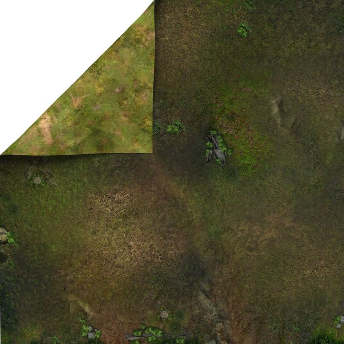 The Double-sided swamp is a mat that perfectly reflects the atmosphere of a bog's difficult to overcome, vegetable in battle games and RPG. Waterproof latex mat of 36'x36 ' / 91.5x91.5 cm is great for games in Freebooters Fate, Godslayer and Tail Feathers. On the other side of the mat, a grassy plain pattern is fitting to a variety of skirmishes.