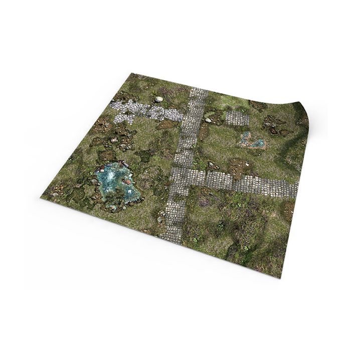 The "Treasure Land" battle mat, sized 48"x48" (122x122 cm), is designed for tabletop enthusiasts who value immersive settings and detailed craftsmanship. Depicting a network of ancient cobblestone roads cutting through wetland areas, this mat provides the perfect stage for epic battles in games like Warmachine & Hordes, A Song of Ice and Fire, and Middle-Earth. With its realistic design, premium quality, and variety of available versions, the "Treasure Land" mat will exceed the expectations of even the most demanding players.