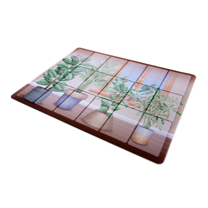 Anti-slip rubber player board dedicated to the game Verdant. The mat shows potted plants of different species. There are marked fields for the game on the mat. Such visuals allow you to better feel the game, which greatly enhances the gameplay experience. In addition to the increased aesthetic value of the game, the mat further protects the pieces from damage and shifting. Unofficial product, compatible with the game Verdant.