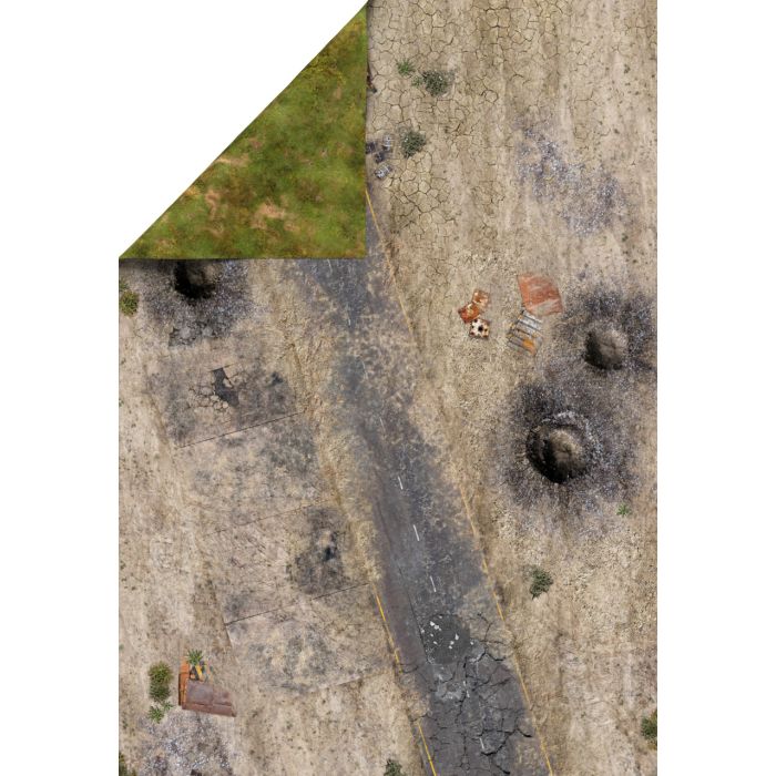 The “Wasteland” battle mat, sized 72”x48” (183x122 cm), is the perfect backdrop for games like Dropzone Commander. Featuring a post-apocalyptic design with a ruined road, craters, and desolate landscapes, this mat enhances your gameplay with immersive visuals. Crafted with premium materials and available in four variants, it’s the ideal addition to any gaming table for epic battles.